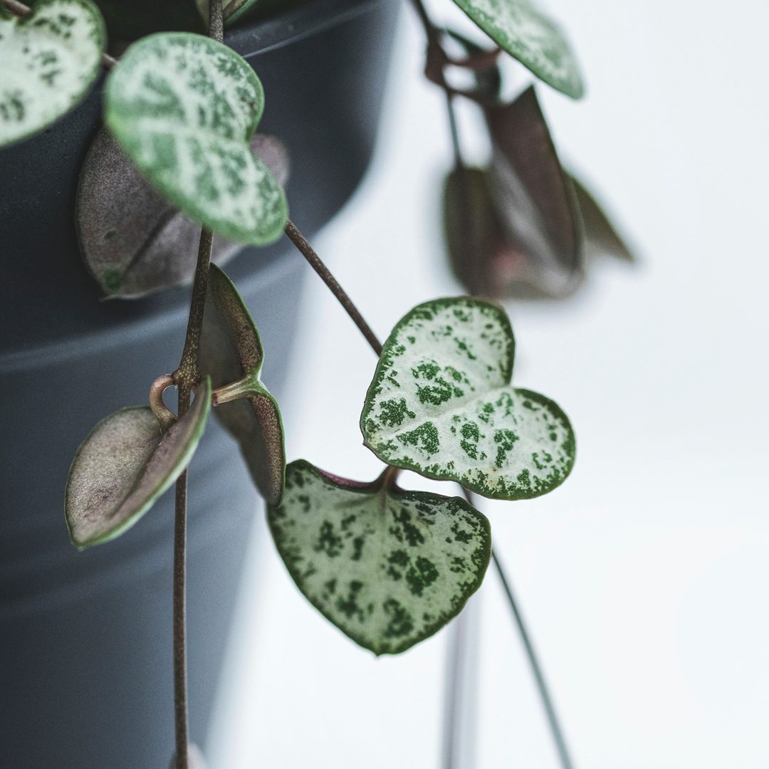 Perfect for those forgetful plant parents, this delicate-looking plant is tough and thrives on neglect. The String of Hearts houseplant showcases beautiful, grey-green marbled, heart-shaped leaves tinged with pink. Tendrils of love will seek your affection with its tumbling vine display. This succulent will fit right into any esthetic. - Arrowhead Vine